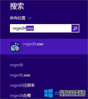 2、或者【Win+S】搜索输入“regedit”程序。