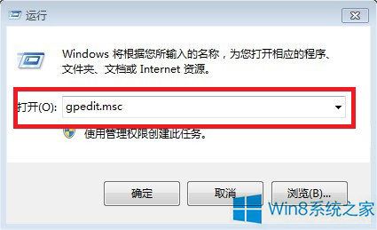 1、这里我们要先用win+R组合键调出运行框,然后输入“gpedit.msc“回车打开组策略编辑器,如下图: