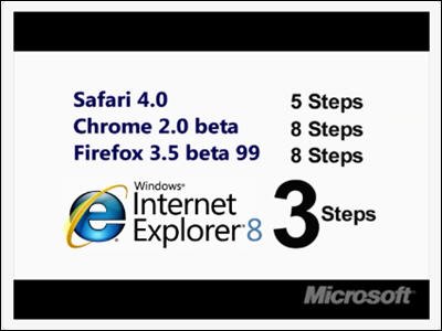 IE作为最受欢迎的浏览器,市场份额说明了一切。多年来一直雄踞浏览器使用份额之首。人们对于IE8的喜源于其良好的口碑与功能的完备。强大的开发团队与极其丰富的经验技术是IE系列经久不衰。 Internet Explorer 8(IE8)是您熟悉的这款最常用的 Web 浏览器的最新版本,与以前的版本相比,它可帮助您更方便快捷地从 Web 获取所需的任何内容,同时提供了更高的隐私和安全保护.